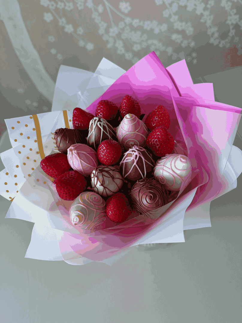 Букет клубника в шоколаде «Лиловая дымка» S