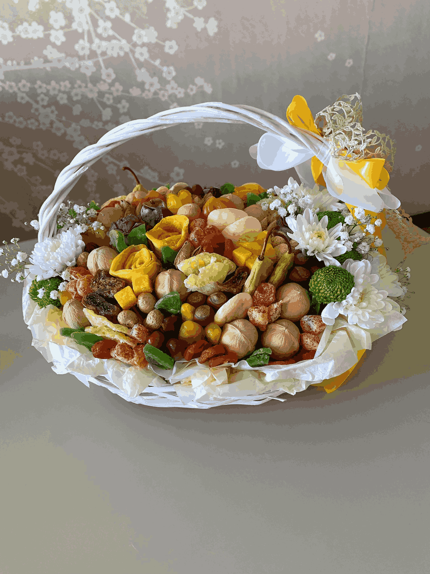Размер М: ширина 40 см, высота 40 см. Возможно исполнение букета в размерах S, М, L. Стоимость букета зависит от размера