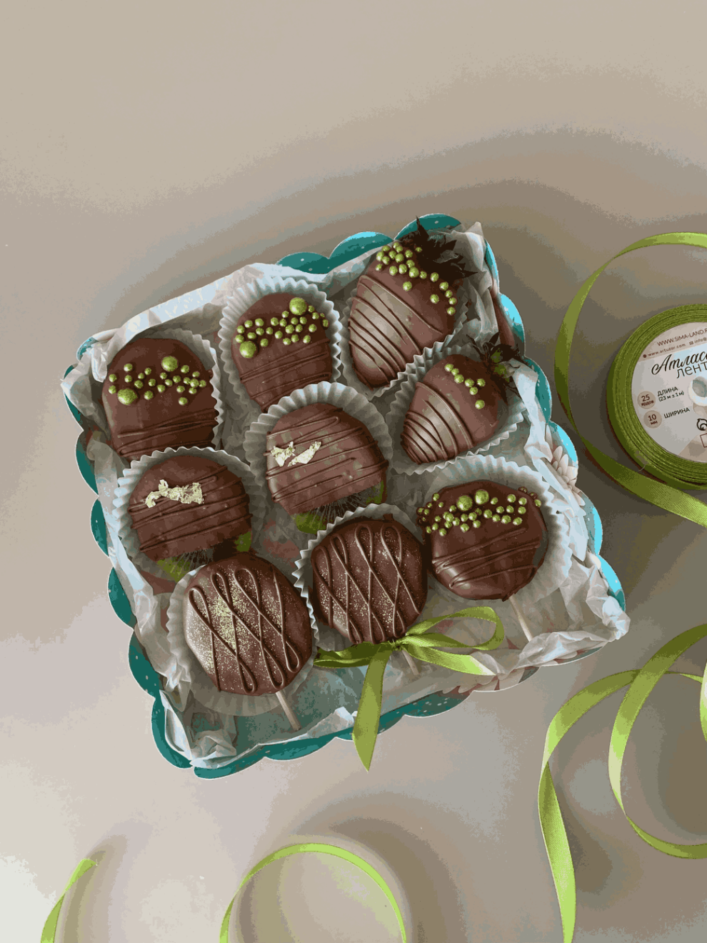 - киви в шоколаде 7 шт., декорированное воздушным рисом