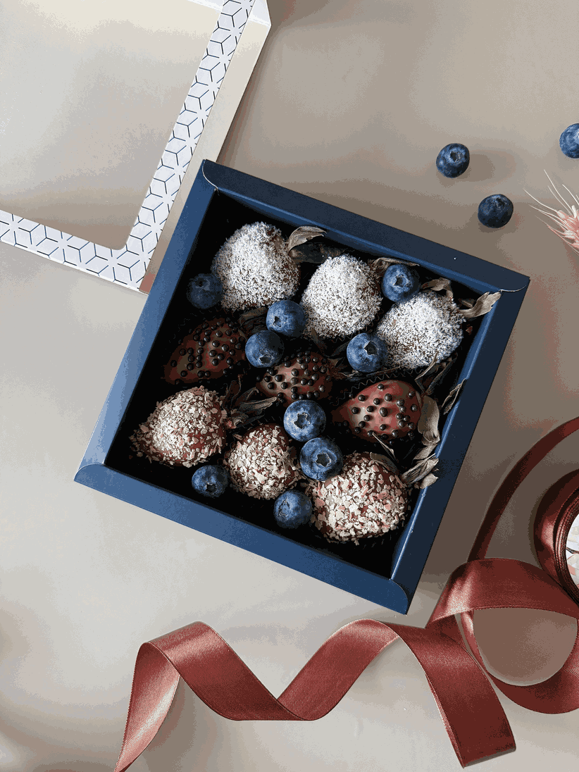 - клубника в бельгийском шоколаде 9 шт. Общий вес ягод - 300 грамм