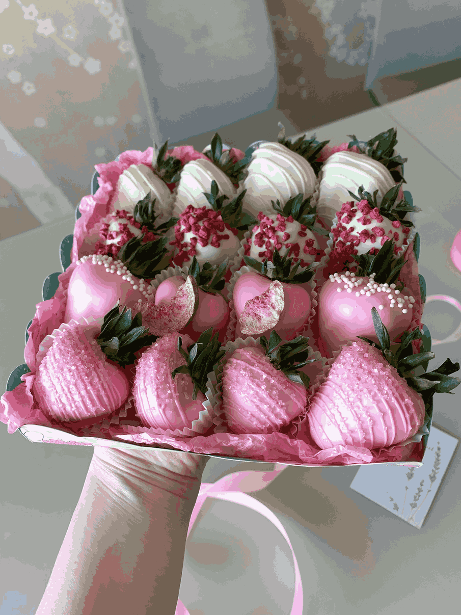 - клубника в шоколаде 16 шт., декорированная сублимированным инжиром, малиной, декоративным сахаром