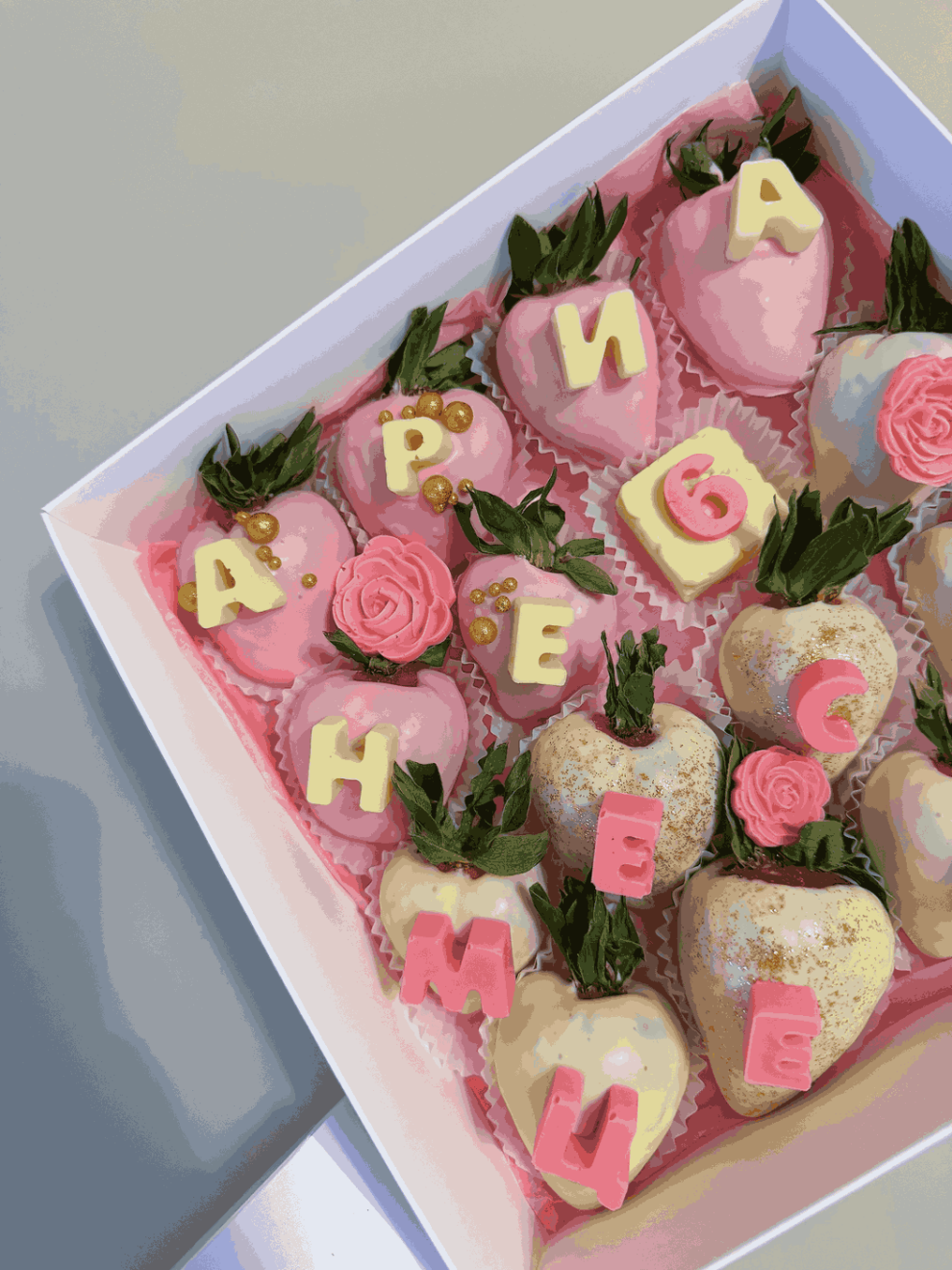 - именная клубника в шоколаде 14 шт. (надпись любая)